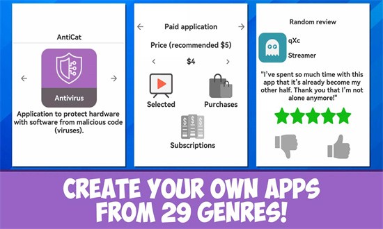 - 发布您自己的设备,为您发布游戏和应用程序!能够生产自己的智能手机或游戏机,从各种选项中选择它们的形状、颜色和细节,等等!