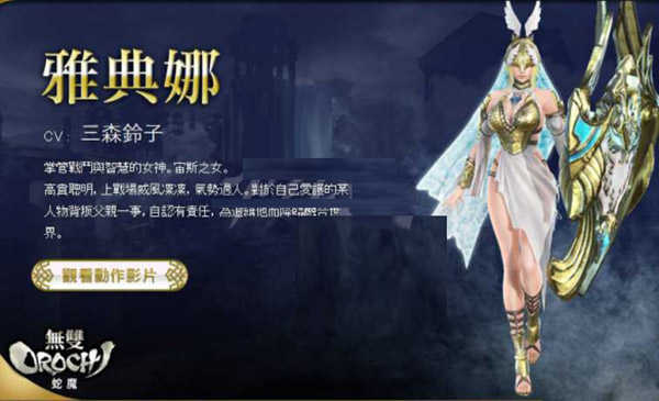 掌管战斗与智慧的女神,宙斯之女。高贵聪明,上战场威风凛凛,气势过人。对于自己爱护的某人物背叛父亲一事,自认有责任,为追缉他而降临融合世界。