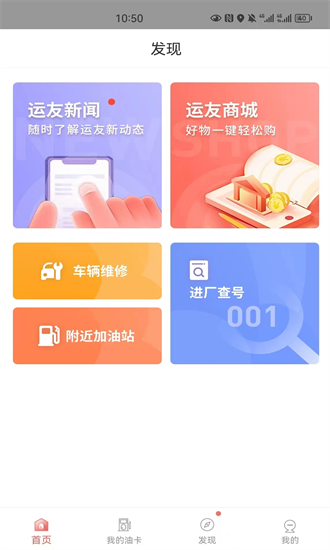 4.在发现页面中即可在线查询附近的加油站、维修点等门店信息