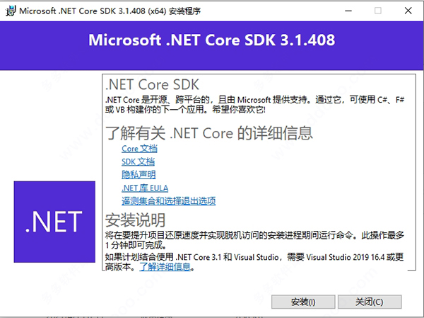 2、然后双击.NET Core 3.1.exe文件,安装游戏运行环境;