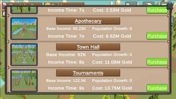 从人类的土地开始,您将通过吸引市民到您的城市并增加您的领域金牌来扩展您的领域,一旦达到城市所需人口,您将解锁新的城市和新的种族。在Idle Realm Builder中,您可以玩4个独特的种族,每个建造种族都有10个独特的建筑物。