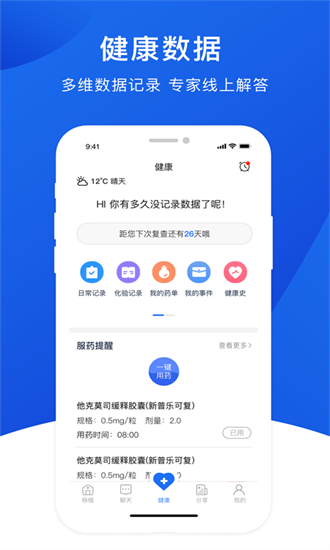 专注于慢性肾脏病的全病程管理,为慢性肾脏病、尿毒症、等待移植及肾移植术后患者提供自我管理、科普学习及病情随访服务。通过记录日常生命体征、用药情况、检查检验结果等,与自己选择的专业医生在线沟通,时刻了解并管理好自己的肾脏健康。肾行app还提供了丰富的科普文章、医师课程、社区问答互动的功能,为患者互通互助搭建桥梁,增加医学知识,提高健康意识,与医生共同管理好自己的身体。