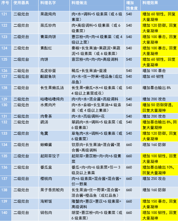 研磨台的配方则是制作调料,用于提升食物的味道: