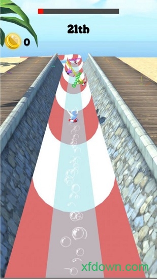 全新的多人竞技休闲游戏,类似滑路的闯关玩法,经典的粘土小人d卡通的画面,玩家们在各种滑梯通道中进行滑行比拼,十分靠玩家的反应能力,一不小心就会滑出通道直接挑战失败。