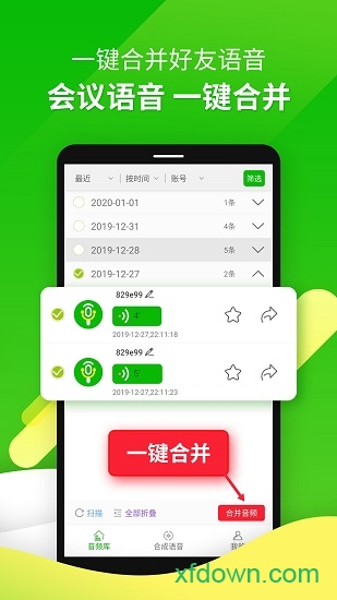 2、微信语音转发app可以将多条微信语音聊天记录合并并导出到一个单独的mp3语音文件中,