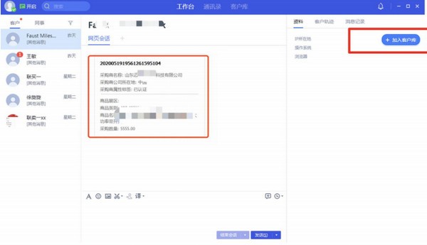 如何查看未处理的即时沟通消息 参展商登录客户端后,在主界面左侧消息列表看到未读消息标记,点击头像或名 称即可查看该条即时沟通消息;在主界面右上角点击“加入客户库”后,可查看采购 商的基本信息。 注:如果即时沟通消息从展品详情页面或意向订单页面发起,那么展品信息或意向订 单的基本信息也会在即时沟通消息窗口显示