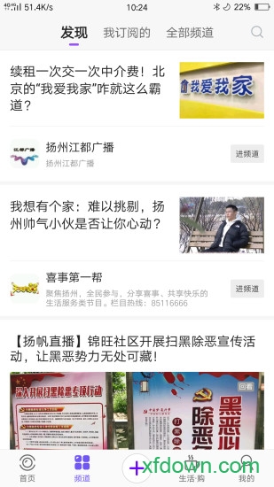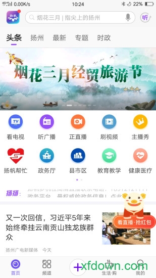 2、资讯:资讯及互动内容展示,视听:扬州电视、广播节目直播及点播;