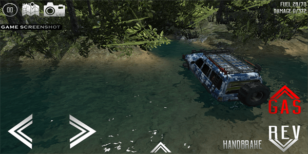 2.游戏以第一人称视角进行,玩家可以在越野场景中控制汽车行驶。