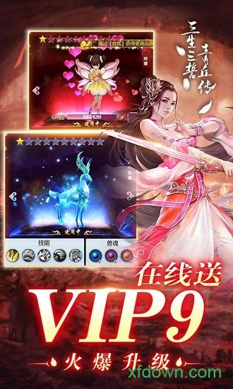 经典三生三世为题材的手游!多种丰富的职业角色,玩家将在这里自由冒险,畅爽PK,体验全新的仙侠冒险!自由飞行仙侠游戏,珍稀物品pk全掉落,千人同屏,激战仙魔界!精美的画面,丰富的剧情、独特的修仙风格、无敌萌宠、霸气法宝、炫酷神兵,全地图抢BOSS爆神装等开放式玩法,携手美女共闯修仙情缘之路。