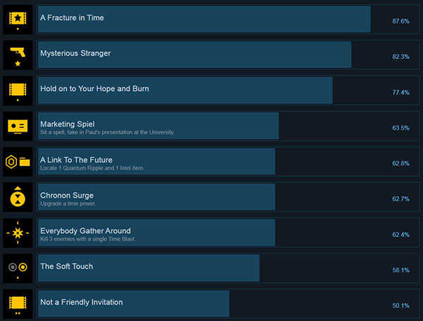 相信有很多小伙伴问问量子破碎有哪些成就?每个成就的达成方法是什么?很下面小编就为大家带来全成就一览一共有1000G的成就点数,一起来看看吧。