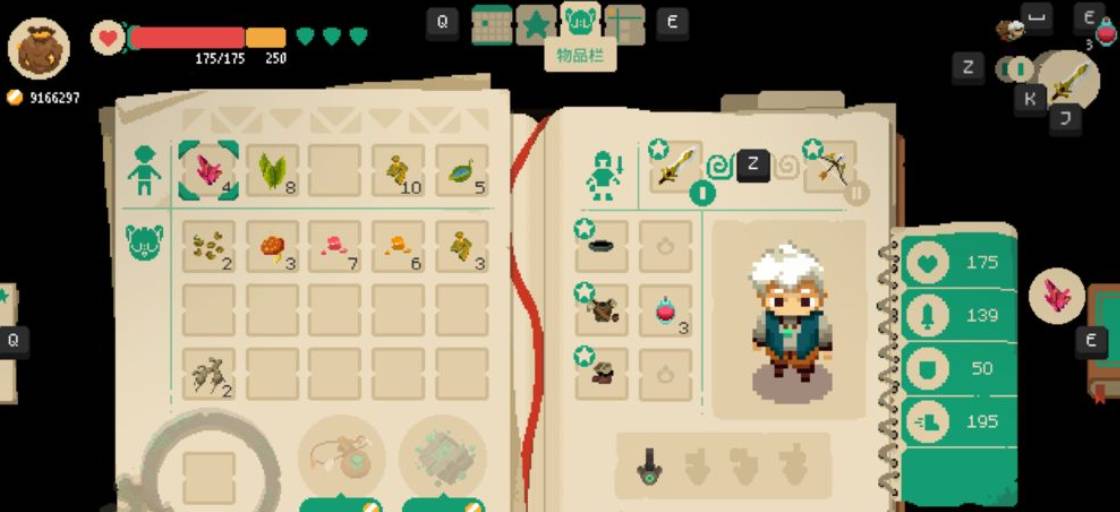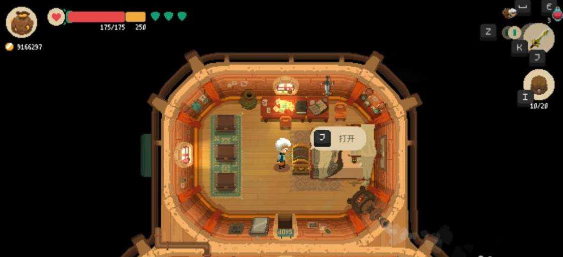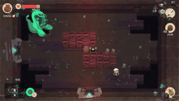 4、击杀地牢的魔物或者打开箱子会掉落物品,走上去会自动收集,掉到深远的物品就无法获取了。右侧显示背包的容量,背包满了就无法再捡东西了。