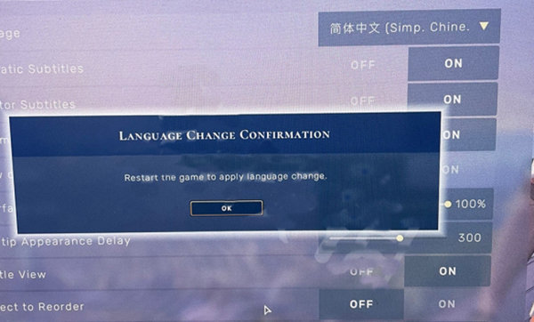 这是告诉我们重启游戏后更改语言,直接重开游戏就可以了。