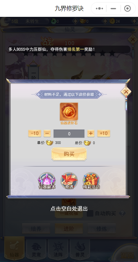 修仙娱乐挂机游戏,九界修罗诀小程序游戏也讲究战术,灵活的运用战术,会帮助您赢得这场战役的胜利,快来一起战斗吧,它一定不会让您失望,每一次在战斗中释放自己的技能都会带来非常精彩的特效炫酷十足;