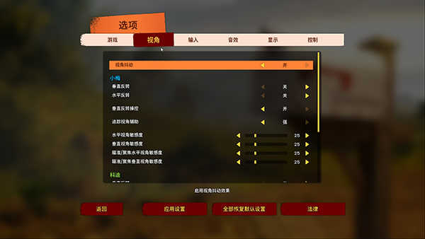 4、在视角选项当中,用户可以调整垂直反转、水平反转、水平视角敏感度等参数;