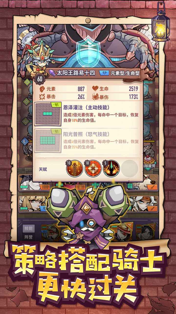 队伍搭配优先级:骑士等级>技能是否互补>天赋是否互相搭配