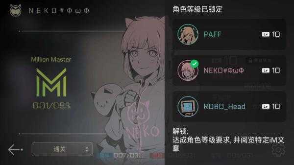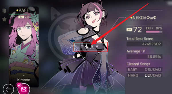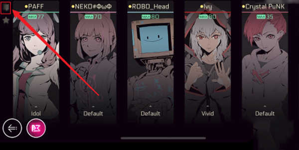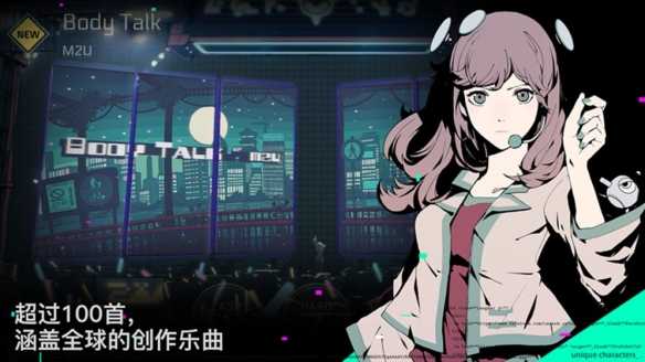 进入游戏界面之后,眼前会出现一些游戏角色,他们各有特色,有点类似于黑客帝国,充满了指令,解锁等元素。点开第一位小姐姐的角色卡之后,画面会出现一个氛围渲染很棒的演唱会,这个主角当然就是她了,界面下面有三个难度的曲子给大家选择,也是需要一步一步解锁的,默认只有两个难度可以选择,不仅如此还可以靠屏幕两端的按键进行曲目的选择。