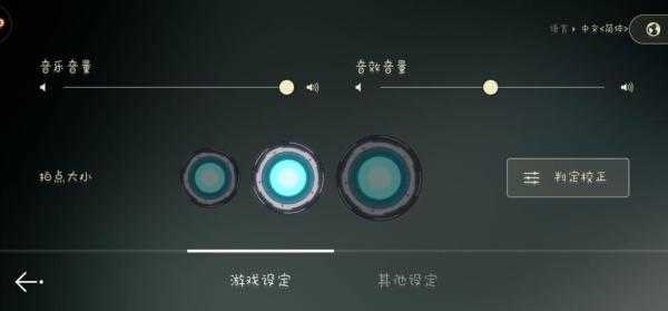 iM按钮的右边有一个白色按键,可以了解所选角色的资料,其中包括通过曲目的数量,也可以在右边设置游戏的一些相关内容,比如音量、拍点大小以及语言等。